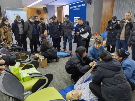 本次培训宣传活动在职业健康、相关法律法规等知识的基础上,根据不同主营业务方向进行了针对性内容准备。在物业公司方面,增加了对消防控制室操作的知识宣讲;针对安保部门加大关于应急处理、心肺复苏(成人、婴儿)、气道异物梗阻、创伤包扎等内容;对于公交公司部门,开展了驾驶员职业健康和心理疏导培训;建筑部门则以建筑施工常见伤害方面入手,涵盖了五大方面的伤害(机械伤害、用电安全)重点安全知识。
