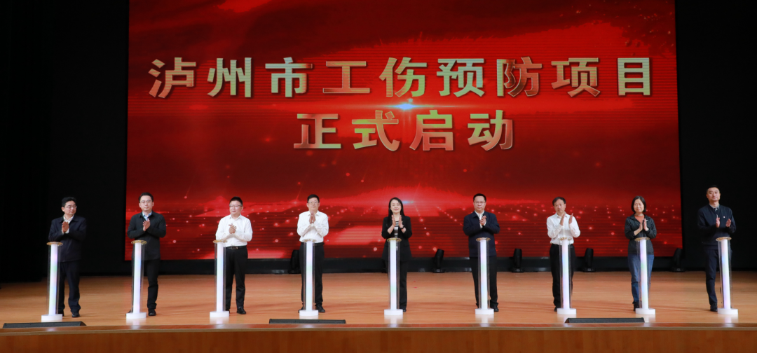 杨毅英、何洪波、刘志勇、文申柳、张国华、王钧、赵银成、饶纲、杨成共同启动泸州市工伤预防项目。