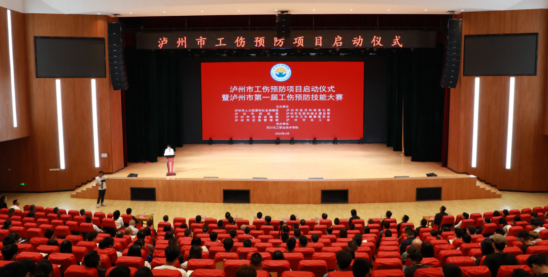 4月27日,由市人社局、市经信局、市财政局、市住建局、市交通局、市卫健委、市应急局、市总工会等八部门联合主办,学校承办的泸州市工伤预防项目启动仪式暨泸州市第一届工伤预防技能大赛在学校隆重举行。省人社厅二级巡视员杨毅英、工伤保险处二级调研员王钧,市委常委、常务副市长何洪波,市人社局副局长王平,市财政局副局长赵银成,市交通局总工程师饶纲,市应急局安全总监杨成,市社保局局长陈智坚、副局长周易,学校党委书记刘志勇,党委副书记、院长文申柳,副院长蒲开伦、邓启华、谢光杰参加会议。市人社局党组书记、局长张国华主持启动仪式。